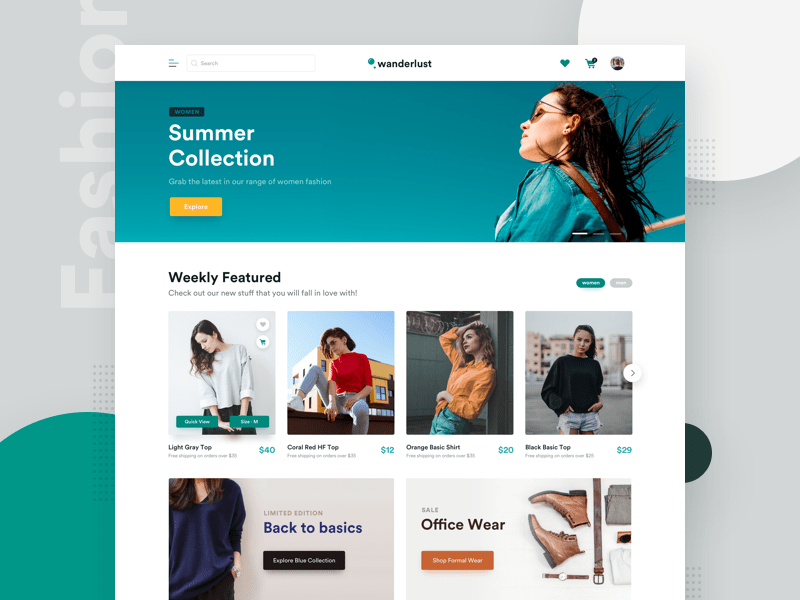- the website name is made by a script font with the pink dot on the i – looks unique